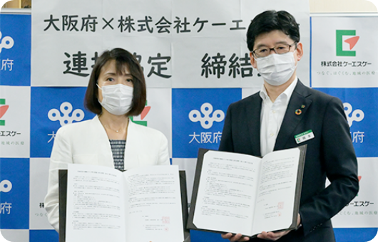 ケーエスケーは、近畿一円の自治体様と、健康づくりや高齢者の見守り、認知症サポートなどさまざまな協定を結んでいます。地域住民の健康への意識、病気への理解、病気の早期発見、健康増進活動に積極的に関わることで、それぞれの地域の方々にとってどこよりも住みやすいまちになるようお手伝いをしています。