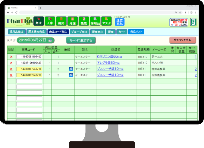 - 「注文ができる」同種同効品検索からそのまま発注可能
